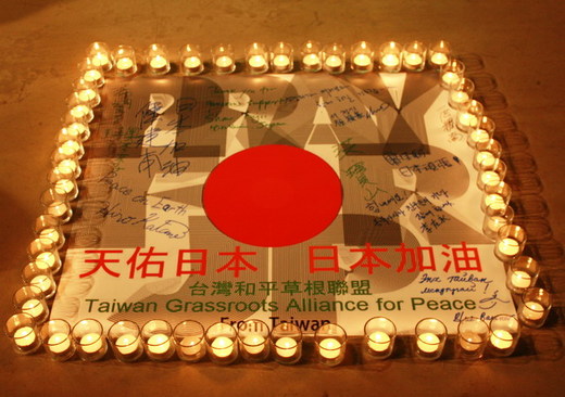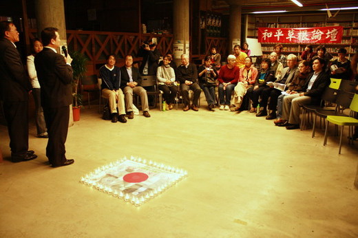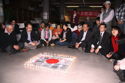 東日本大地震至今已過了三個禮拜,由於災難慘重,至今上萬名失蹤人口尚無法找尋到,更多災民還住在避難所裡。五日晚上來自日本、中國、香港、蒙古、南韓、菲律賓等地和平NGO特別齊聚ㄧ堂,舉辦了一場祈福活動點燈為日本加油。