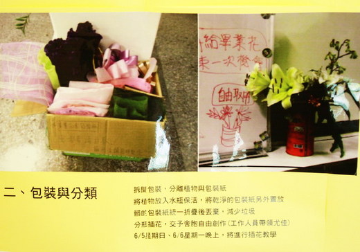 這項活動短短三年就有很驚人成果,第二年有統計處裡花束就20公斤,今年成長到76公斤,回收267束花,而其他學校也紛紛響應。