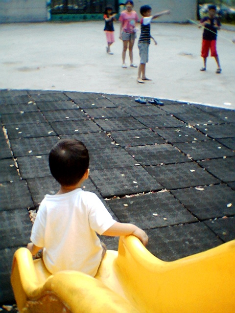 但大哥哥、大姐姐(國小高年級)玩瘋了並不想理會他,