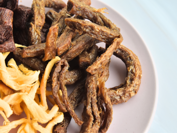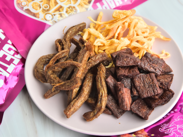 分別是原味乳酪絲、東坡辣竹輪、原味素蹄筋