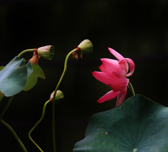 清香荷葉露珠沾,芙蓉枝頭花月弄。