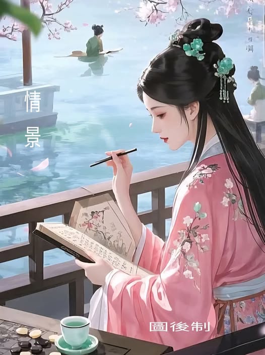 半是朝霞半墨花,款款情詩憶紅鸞。