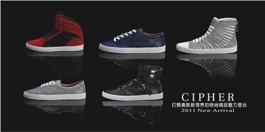起源於美國洛杉磯,CIPHER的品牌核心來自對新世界探索的生活態度,鞋款設計從低調復古、美式混搭到簡約摩登,內外兼具的實用性搭配俐落的線條,為大都會的「勘旅者」轉換不同的角色與功能性,品牌無國界的概念更是來自設計師所賦予每一雙鞋的產品精神,CIPHER風潮已在歐美掀起一股時尚新浪潮,成為型男雅痞趨之若鶩的設計單品。