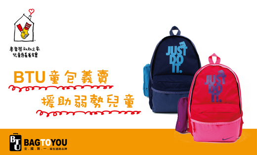 只要在12月31日至全國30間BTU指定門市,購買NIKE限定款兒童後背包,該筆款項將全數捐給麥當勞兒童慈善基金會。BTU邀您一起用愛心迎接跨年,