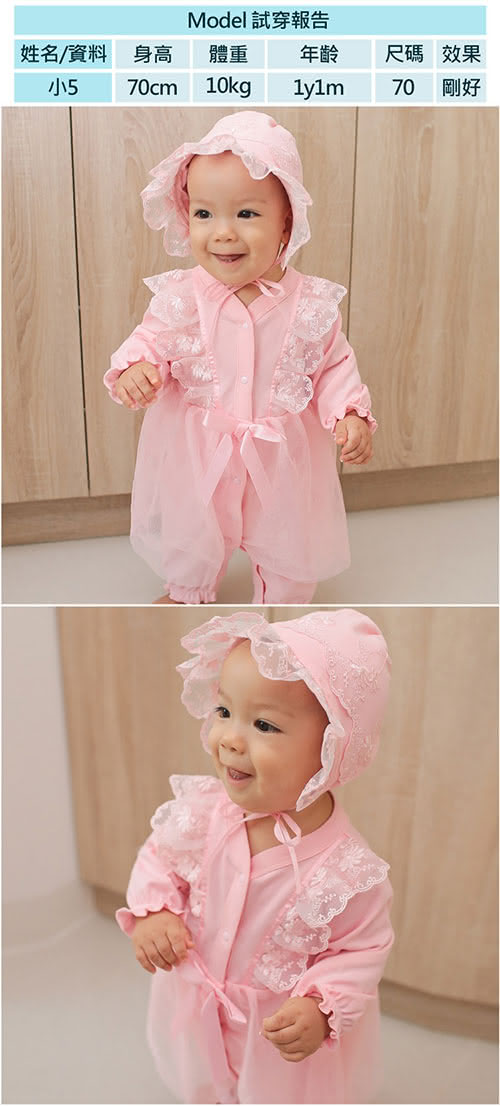 台糖嘉年華購物中心母親節獻禮【Baby童衣】蕾絲緞帶造型連身衣 附帽子 70125(共2色)試用