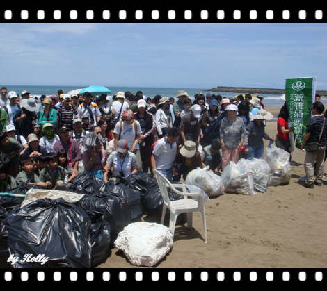 十點多,報名參與沙崙淨灘活動的四百多名企業員工及民眾陸續抵達,其中,還有很多是爸爸媽媽帶著小朋友一起來共襄盛舉,別具教育意義。其實,撿拾垃圾的時間並不長,只有一個小時,但是在「團結就是力量」的努力下,數百人一起動手,在正午前很快就把這片沙灘清乾淨了。