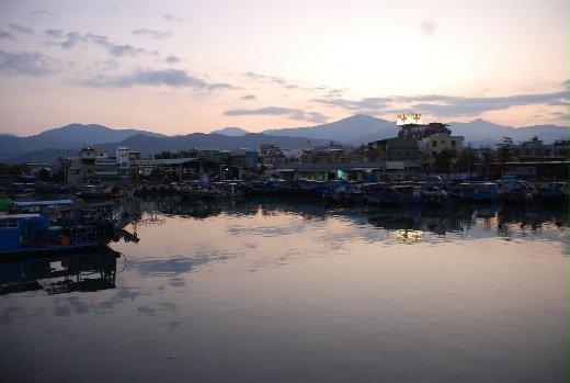 漁港的海水是那麼的靜,映照東方山脈的倒影