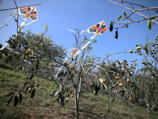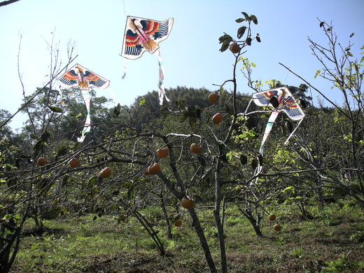 有點糗 我剛看到照片時,還在吶悶是誰怎麼不長眼睛,會到果園來放風箏咧~