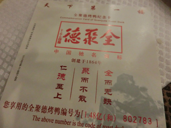”北京全聚德和平門店” Tel:+86 10 6302 3062
