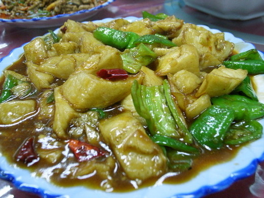 以大盤雞最出名,製作方法講究,配料選擇嚴格。做出的成品色金紅油亮,味麻辣醇厚,再加上寬板拉麵拌以湯汁,既可飽腹又能饗口福。