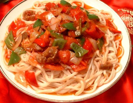 麵食的食法以拌面 拉條子,是用手工拉出的涼拌面,顏色油亮金黃。面細如遊絲,柔韌耐嚼。在配上蒜、醋、辣椒,味道獨到,深受各地來客青睞。