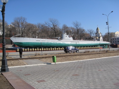 (3).【C-56潛水艇博物館】,在海參崴的「太平洋艦隊的戰鬥榮譽紀念碑」廣場上,矗立著一艘真實的退役潛艇,它是曾榮獲紅旗勳章和禁衛軍稱號的「C-56號潛艇」。【C-56潛艇】1936年建造,第二次世界大戰時曾擊10多艘敵艦,重創潛艇四艘,立下汗馬功勞。現為太平洋艦隊軍事歷史博物館,供人入內參觀。