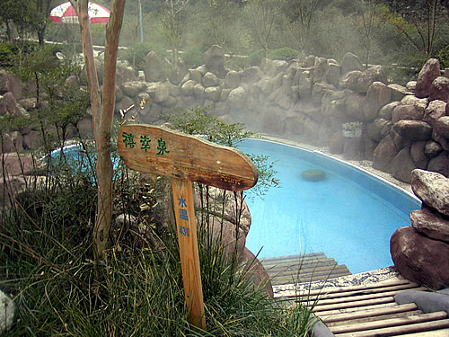 處水溫達90℃多度,然後一個個池降下來,最適宜人浸泡的一片