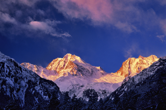 其一,日照金山。海螺溝身處山腳,周圍有海拔6000米以上的衛士峰