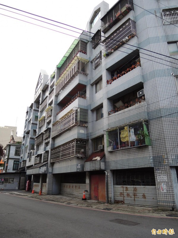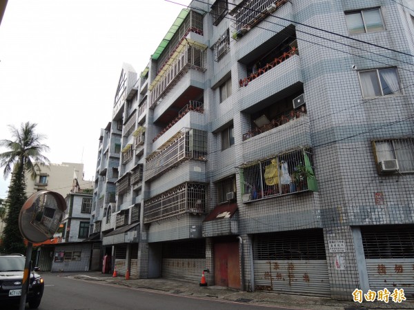 男童懸空卡頸的大樓,是一棟6樓高的集合式公寓。(記者李立法攝)