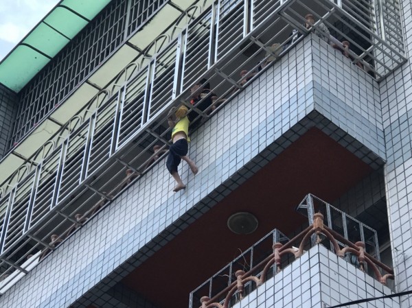 好溫馨!4歲童驚險懸空卡陽台 民眾合力張帆救援
