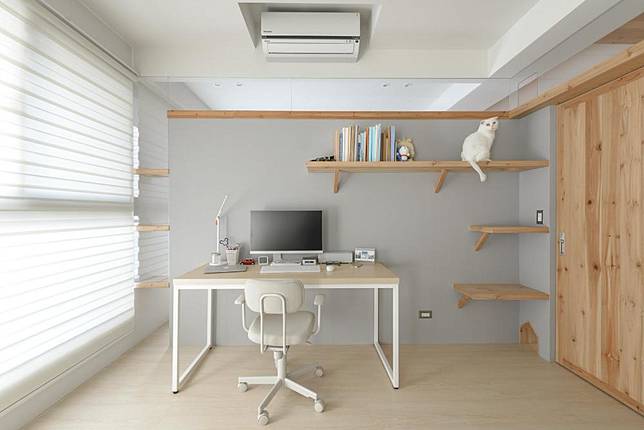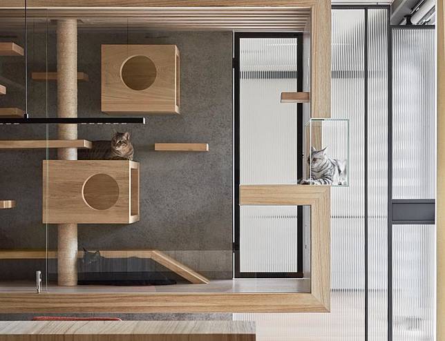 貓咪是天生的獵人,除了錯落的層架與書櫃外,生活動線最好可以貫穿全室,運用空中走道、垂直空間與躲藏角落等滿足喵星人的狩獵本性。