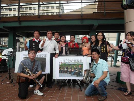 台中市議會國民黨團成員黃馨慧,陳有江、朱暖英和日前聲援茉莉花行動聯盟的議員洪嘉鴻等人,二號下午在大台中旅遊服務中心召開記者會,表示,市府為了防止阿拉夜店大火的事件再度發生,對違規業者嚴加稽查,但不該傷及無辜,讓合法業者和音樂工作者,頓失經營和展演的空間。議員說,台中市號稱文化城,但是市府文化局很多的活動表演遠從台北請來,本地音樂工作者反而沒機會。議員們建議市府修改街頭藝人實施要點,因為現有二十二處表演地點,包括精明一街商圈、美術園道商圈、電子街商圈、繼光街商圈、大坑圓環商圈、一中商圈、逢甲商圈、豐樂雕塑公園、第一廣場、二二八紀念公園廣場、兒童公園、中正公園、梅川親水公園、舊社公園、健康公園等等,都在原有的台中市,沒有擴及原有台中縣,要求增加表演據點,多給在地人機會。