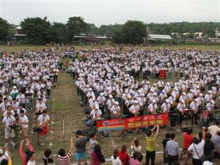 (中央社記者陳淑芬台中7日電)台中市今天晚間在后里馬場聚集了1432名薩克斯風樂手齊奏,挑戰金氏世界紀錄,演奏爵士樂風的中華民國國歌及民謠四季紅等樂曲,在建國百年讓世界聽見台灣,締造世界紀錄。