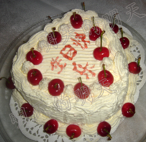 生日快乐---心型樱桃鲜奶蛋糕