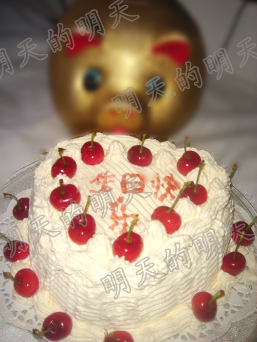 生日快乐用家里现成的草莓酱挤的,下次还是要用融化的巧克力。字的位置也挤没好,豪在旁边说要上下各两个字,我没听,挤出来确实难看。![]()
