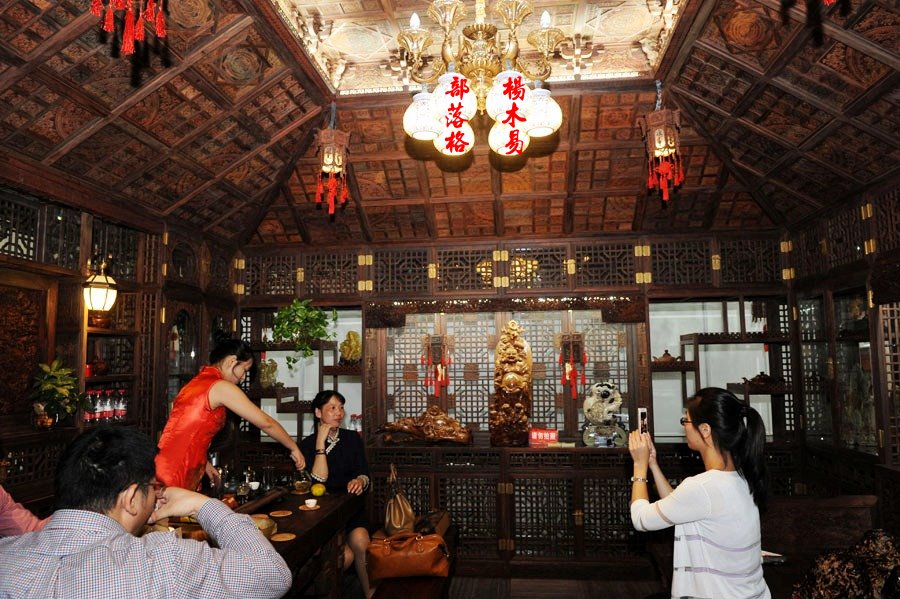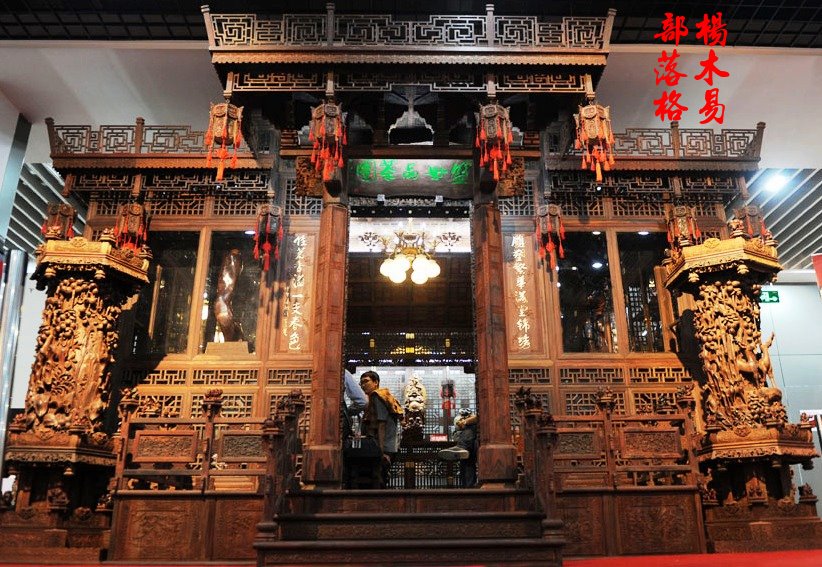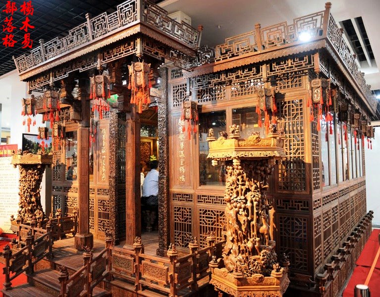 中國浙江省東陽市舉辦的2014世界工藝文化節“百花杯”中國工藝美術精品展,一座匠心獨到的木雕作品《盛世品茶圖》吸引了眾多市民駐足和進內參觀品茗。這座價值3.5億元人民幣(大約17.4億台幣)大紅酸枝製作的《盛世品茶圖》是當地林業有限公司眾多工匠耗時四年精心製作而成,最後獲得了本次 “百花杯”中國工藝美術精品的金獎。(如圖)