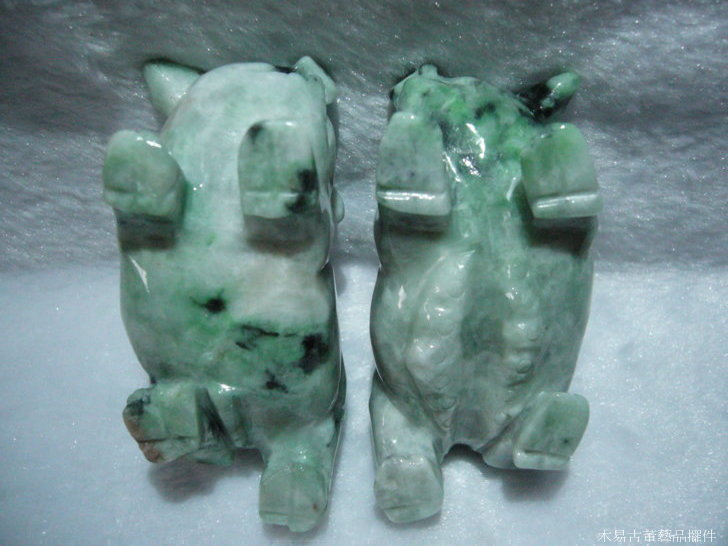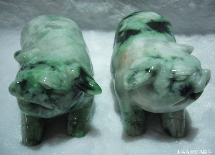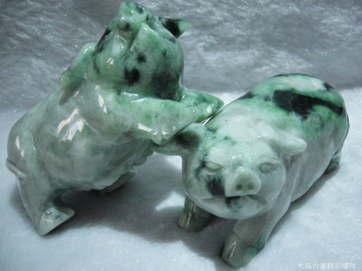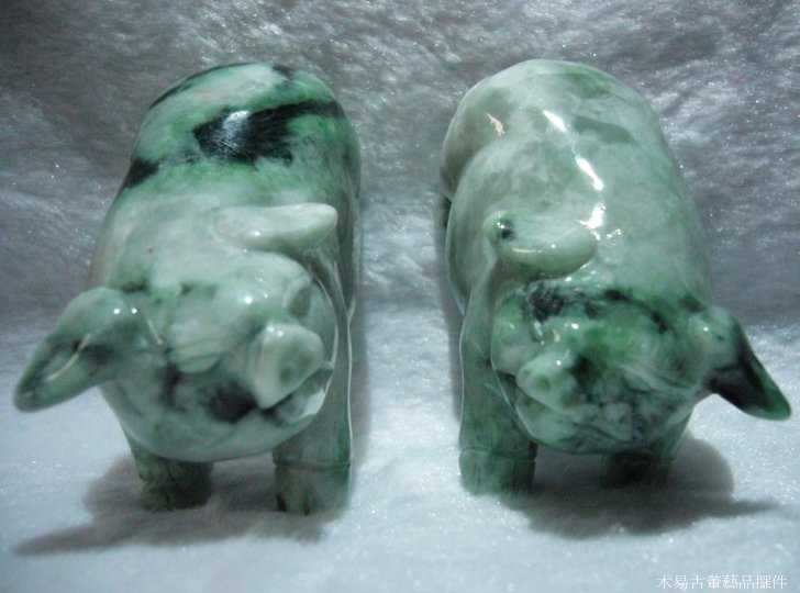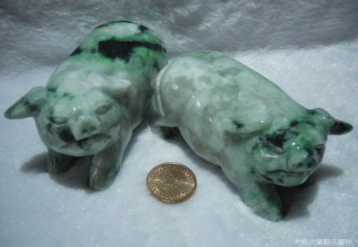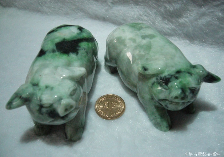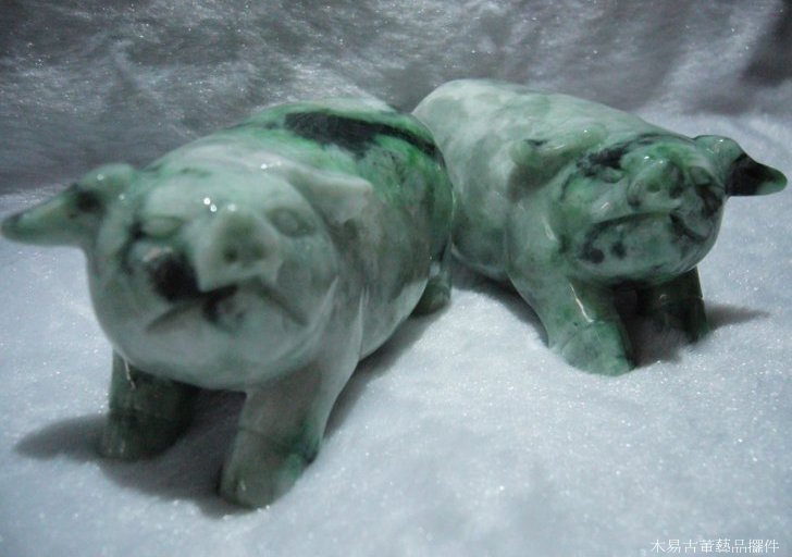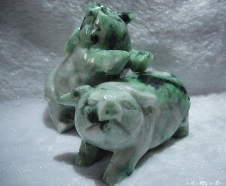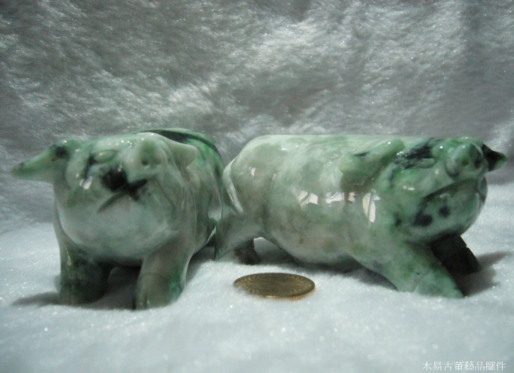 天然翡翠A貨翡翠豬擺件雌雄一對 可當擺件、把玩件