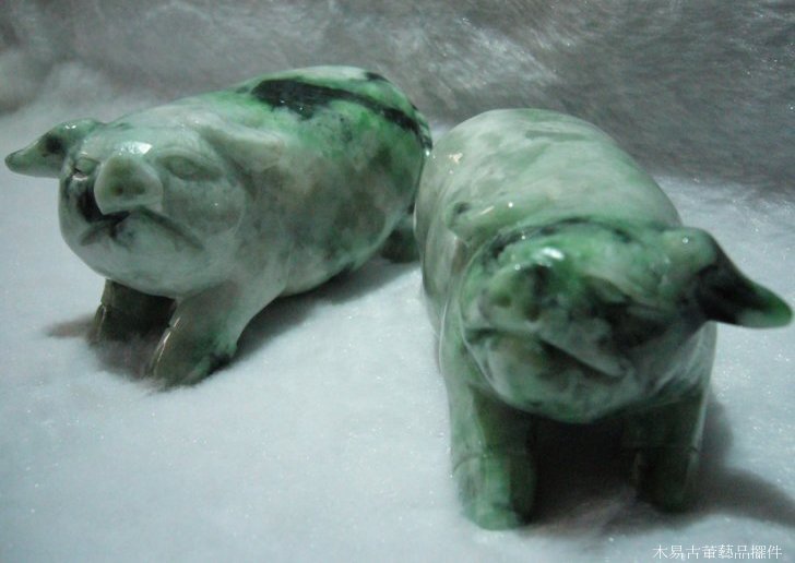 特色:玉質光亮水潤,質地細緻,手工雕刻打磨,豬的身型飽滿健壯,笑容可掬。旺財豬,是傳統所認為的財富、福氣的象徵,因此在風水學上,豬是具有財富的靈動力,寓意福氣、美好。