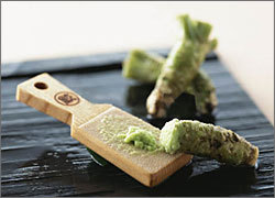 Wasabi 的感覺. 享受日本料理一般來說要比其他料理價位來得高如果以中高檔的時下餐廳.中餐以游壽司350套餐最好又便宜(因此難預約呀!)其他有750到2500都有晚餐大概就得從1200起跳至4-5000. 日本料理除了生鮮的美味.還有健康美食的取向尤其沙西米及握壽司(Nigiri)吃上隱了還真難以回頭呢! 日本料理餐廳在台灣這數年因為許多師傅的各立門戶增多.競爭之下食客也就越能感覺個中功力的高下.因為日本料理至高已致入藝術的境界.自然.原生.淡味.極簡也就得表現在裝潢.食器.食材.巧手與飲食的芬圍裡.如能有飲酒品酒之樂加在其上就真可謂之*仙*輩幸福了.說到 日本料理不能不先說到Wasabi這重要配角生魚片沒了它倒真不知怎入口哩! 想到數年前曾參觀過日本鄉下Wasabi田與製作Wasabi啧zukei工廠對於Wasabi大開眼界聽說阿里山也許多生產銷到日本.因此如果在台灣高價的日本料理餐廳還讓你吃用化工原料芥末.你應該抗議或罷吃把他列入地雷餐廳.太不厚道了.一斤不過600元的阿里山山葵都捨不得用還算那門子高級日本料理呀!