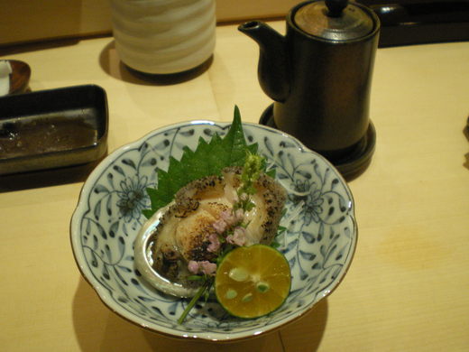 在台北生活.匆忙又煩躁.唯一挽救自己身心的方法就是有時(其實3個 小時夠了)摒棄一切俗事找一個soulmate 或一個人到一家真棒的餐廳好好靜靜地供奉自己的五臟廟與自己的身心對話.古人說”吃得是福”真的很貼切.尤其當有時自己身體不適毫無味口食慾之時才知道這句話的真義.也因此能找到一家認真敬業的上好餐廳(當然得配合個人的品味.問問口袋的麥克等一樣米養百樣人因人而異的想法就不要一定的認同)是我一直重視的小小願望. 在台北市京兆似乎已達到這理想的水平之上.無論食材.衛生.服務水平.還有chef店主的品味.藝術涵養都有極高的水準.(有一點納悶就是台北市這些高水準日本料理如野.荃.MASA 還有這京兆店主一個比一個帥.不夠帥不行嗎?)一餐飯可以是50元以內的魯肉飯解決也可能是5000元以上的高檔消費.用餐環境.情調.食材的講究要臻入藝術的感覺真的不是一件容易的事呀!版主大大peray.等人有京兆精湛的照片與推介.只秀兩張大野蝦.小awabi 聊表敬意及對該午餐的滿意.