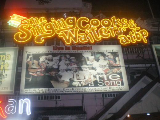 圖片是一家叫IHOW IHOW餐廳裡面不管是警衛.廚師.男女侍者都是一流歌手.享受美食之餘.除了樂隊伴奏大家手拿鍋鏟.杓子當麥克風全員都圍繞著顧客高聲歌唱.煞是有趣.