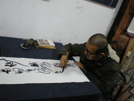畫會一行十數人到宜蘭拜訪藝術家賴棟材許多創作.也蒙當眾揮毫示範.吟詩.多才多藝.