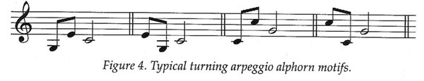 當觀光業興起之後,政府當局也看到阿爾卑斯號所帶來的效益,瑞士當局為了強化阿爾卑斯特色,開始安排阿爾卑斯號在著名觀光景點吹奏,並且對於吹奏的旋律也有所要求,希望帶來溫柔,有牧場風的旋律,最好還可以激起大自然的回音,我們知道阿爾卑斯號跟自然號一樣只能吹奏出泛音列之內的音,而泛音列中有幾個音會聽起來「走音」,因此演奏者吹奏「音準」的音,或是大調和弦的音,避免會產生小調和弦或是「不準」的音,這樣可以為訪客帶來積極並且有愛與生活化的音樂感,久而久之,讓人產生愉悅感的大三和弦動機成為觀光客心中典型的阿爾卑斯號樂音。