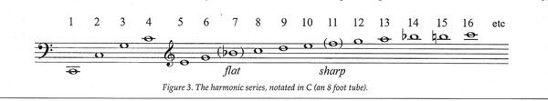 (泛音列,打括號的音就是偏低或是偏高的音)