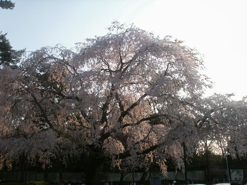 走出哲學之道. 明明車站的指標是往前直走 .但是為何大多數的日本人 .卻是往左邊的巷子進去!? 好吧 !反正不趕時間!跟著人家走走看!順著小路 彎來彎去! ㄛ!好大的一間古寺!這是側門入口.. ! 好多的人潮 呵呵!但是看得出來 沒人是來參禪禮佛的!每個人都是流連櫻花樹下!古寺氣度非凡 看得出來不是普通寺廟! 櫻花盛景也是數一數二 !走出大門才知道 原來這就是有名的南禪寺!門口的垂柳櫻 在夕陽下顯著氣象萬千! 兩旁的茶屋 餐廳 看起來很雅雋! 如能跟三五好友坐在這裡泡茶 賞花 當是人間一大樂事!
