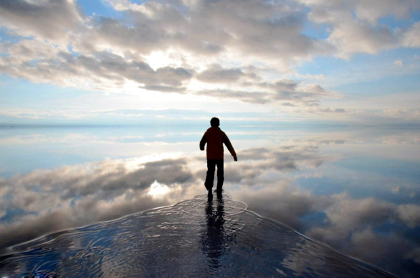 p.s圖為玻利維亞的"烏尤尼鹽湖",人稱:天空之鏡。此景因冬季鹽湖面結冰,反射了天空的倒影而生。真做假時假亦真,誰說你不是漫步雲端呢?