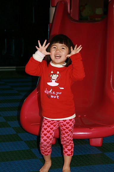 漸漸的她慢慢的顯現出她的個性 ; 有點雞婆; 好勝心強...只要不如意/不順心就哭.... 老師說 她排隊一定要排第一個; 不然就還哭給你看...真是傷腦筋...