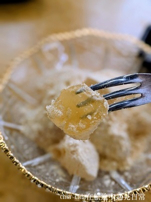 用名水製作的蕨餅,質地格外柔軟、清涼,叉子切下的瞬間,切面透明得幾乎能透光。