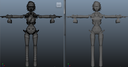 改到這樣,修改過腳的位置比例、手臂的比例,頭髮也重新做了, 所以看起來跟前一版應該差很多,但跟真實的狀況又更接近了些。 不過星期四的新助教指出還有很多修改空間Orz 呼 還是努力搞Rigging(?)...