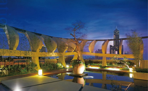 「首耀」是福懋建設年度全新創藝大作,除了展現ART DECO現代建築美學,更以獨特的〝飛簷燕尾〞天際線,讓城市的天空,多了一道凌空閃耀新曲線。最受園冶獎評審團青睞的是,頂樓的「上善若水.空中花園」,以迴遊式水廊,樹映水鏡池,呈現宛如畫境,日夜變幻的清雅之美!
