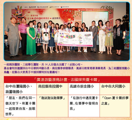 昨天參加廣達文教基金會,舉辦的『夏卡爾愛與美的專賣店』酒會,女兒就讀的前金國小獲獎,廣達文教基金會安排,將於8/1~8/8前往法國八天,我都沒去過歐洲,女兒還先我一步去法國,感謝廣達文教基金會。