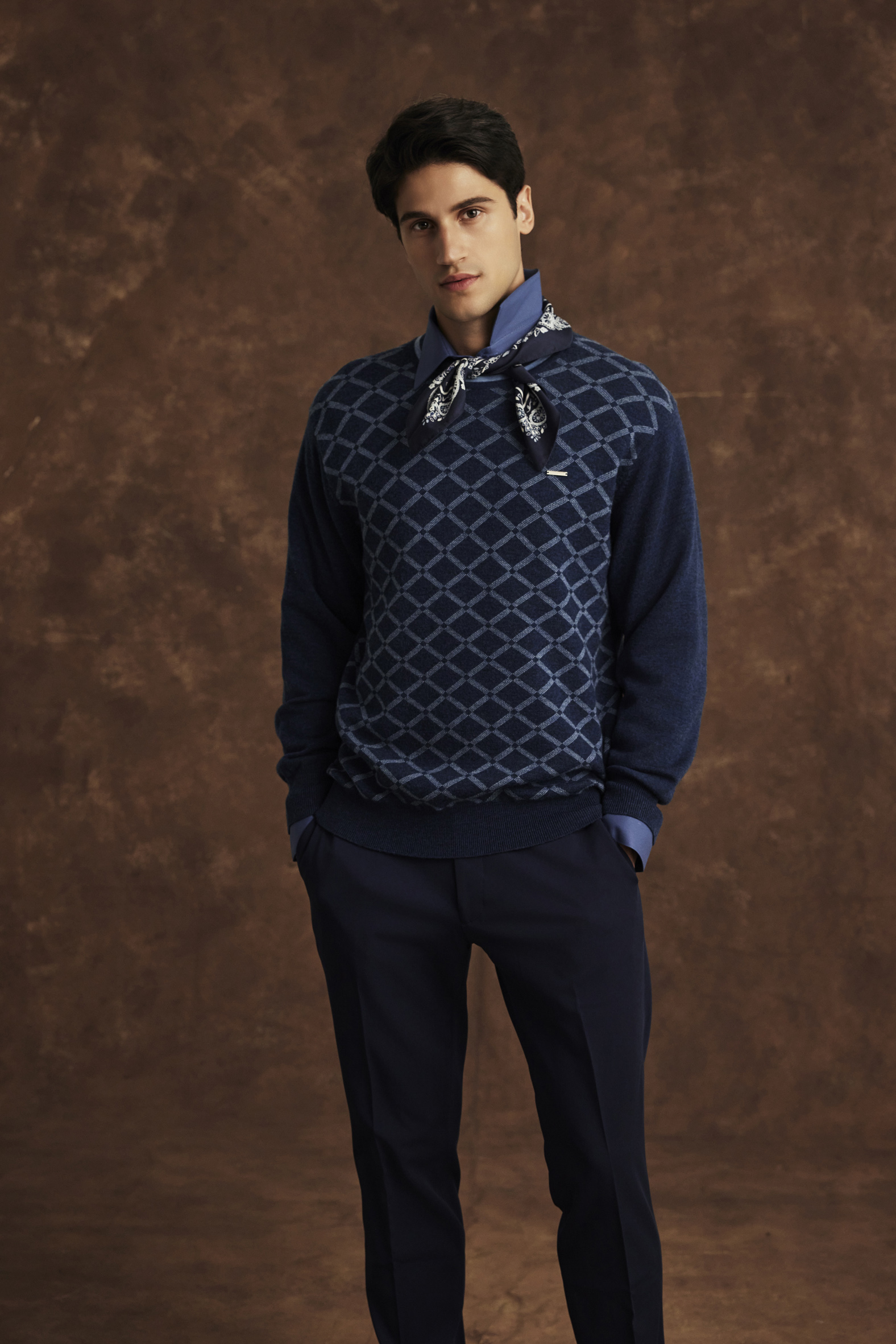 系列中的幾何圖紋針織單品,呼應 Art Deco 的裝飾藝術美學,展現內斂品味與穿搭質感。無論休閒或正式場合,皆能自在詮釋現代紳士的優雅風度。