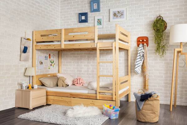 雲衫松木多功能雙層床架:採用天然松木,雙抽屜設計,上下床頭皆附雙孔插座,生活超便利。
