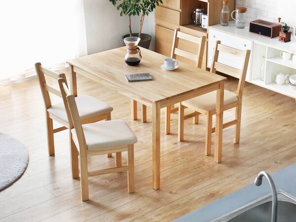 黛納日式餐桌椅:天然松木打造,保留木質的優美紋理,結構堅固耐用,棉麻坐墊,簡約高雅。