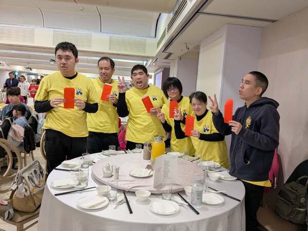 陳文琦董事長並致贈龍潭肯納莊園演出人員小禮物,大家齊聚一堂享用餐會美食,滿滿暖意的一天,傳遞愛無限。