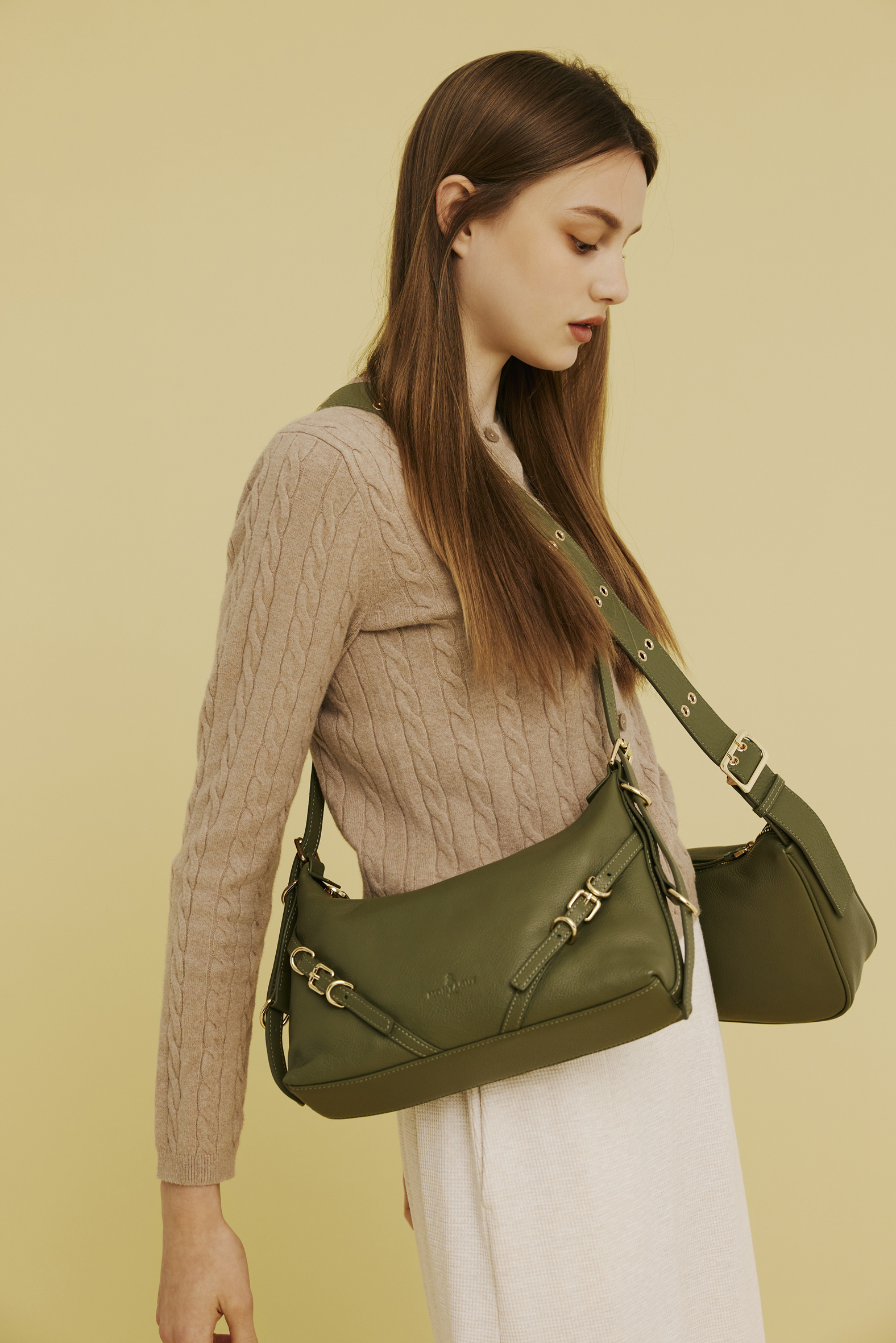 柔和而耐看的色調,是本系列最迷人的開場。從低調沉穩的橄欖綠、溫潤知性的咖啡棕,到清新淡雅的藍灰色,靈感源自法國街頭的日常風景,輕鬆融入通勤、約會與週末漫步的各種情境。包款輪廓俐落卻不失柔美,無論搭配針織上衣、格紋外套或簡約洋裝,都能自然成為整體造型的亮點。