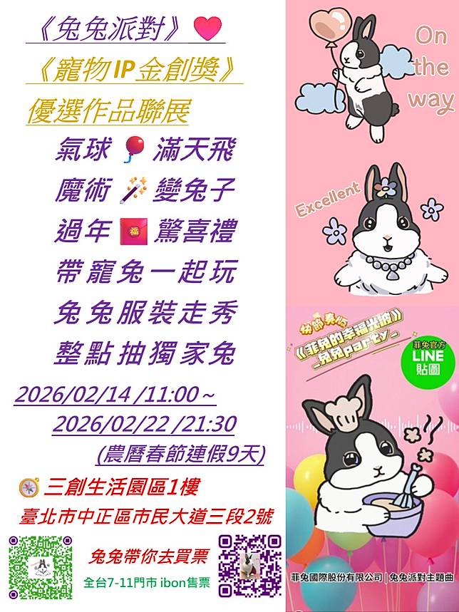 🎟️《兔兔派對》展會購票資訊:在全台7-11 ibon 或現場購票。