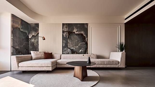 這是一個專為度假與工作而建構的場域,因此得以拋開日常居住的限制,在空間的規劃與設計上更為大膽,設計團隊首先拉齊線條、區隔空間領域,再運用「異材質」堆疊出豐富多元的層次;以知性優雅為經,感性流轉為緯,擘劃具有深度的空間樣貌,低調而精緻的細節安排,完成一場材質與光影的藝術對談。