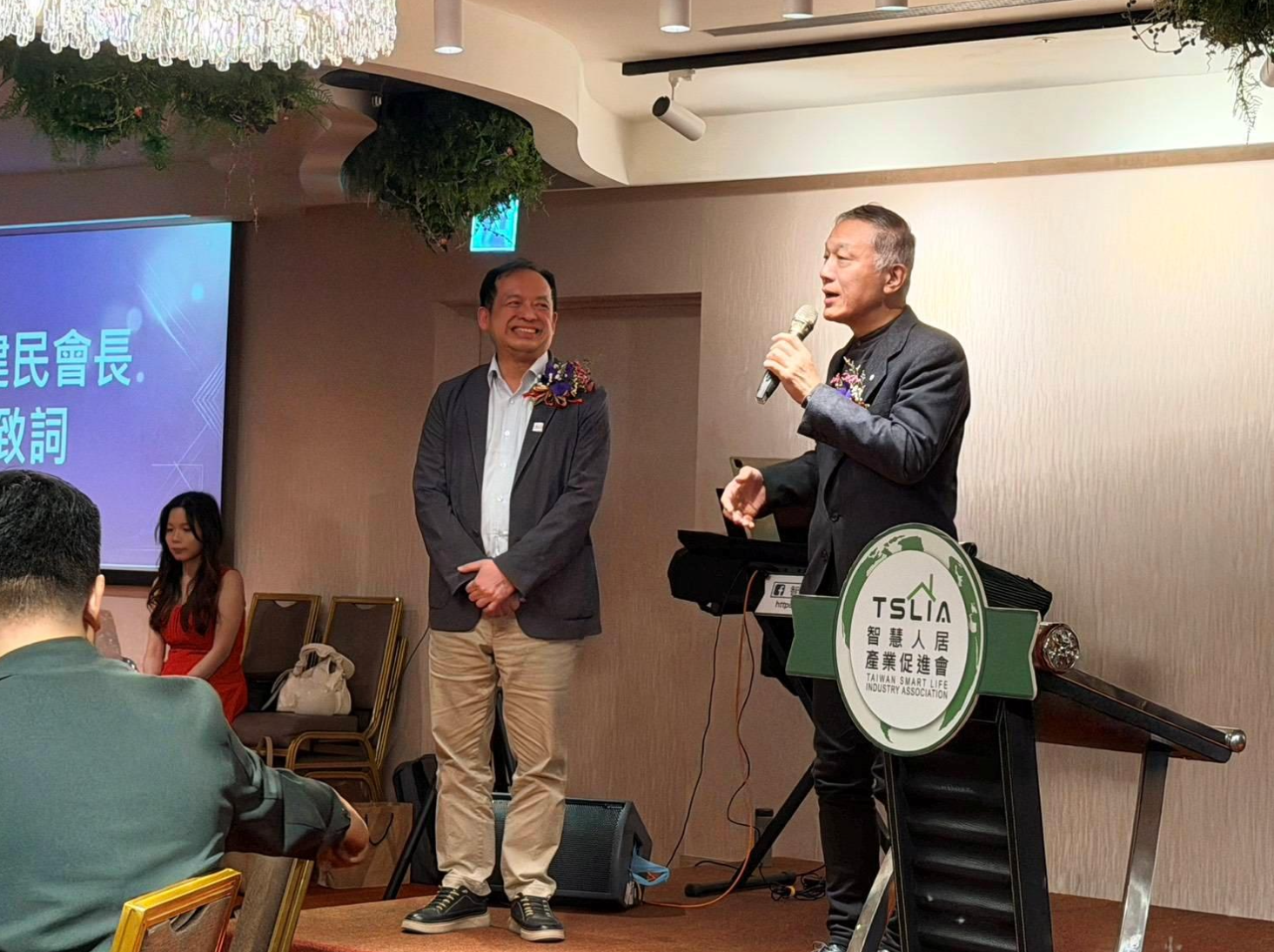 聯歡晚會邀請來自台北市都市更新協會吳厚毅理事長、中華民國建築師公會崔懋森理事長、中華民國都更危老重建協會楊謙柔理事長、中華民國室內設計聯合會劉易鑫理事長、台灣建築中心王婉芝副執長、台灣智慧淨零建築聯盟孟義超祕書長、新北市估價師公會莊濰銓理事會長、新北市建築師公會汪俊男理事長以及內政部建築研究所淨零建築政策業務組──環境控制組羅時麒組長等,重要產業團體代表皆到場支持,展現建築專業對智慧人居與永續議題的高度共識。晚會不僅象徵產業交流深化,更為後續一系列國際論壇與專業講座揭開序幕。
