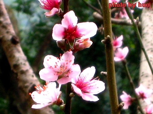 溪的對面山坡上種滿了桃樹,一棵棵老桃樹開滿了桃花,有的甚至於結了果實(圖二)。我們沿著永春溪旁的施工道路往上游走,不久就到達「丁」字路口,右手方向經永春寮往中正山,左手方向則是過永春橋往大屯國小。